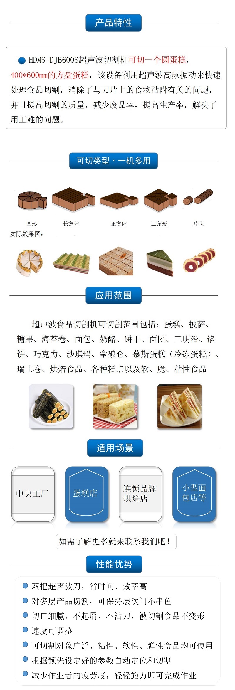 該設(shè)備配備雙把超聲波刀片,既可切方蛋糕,也可同時切兩個圓蛋糕,效率更高 |